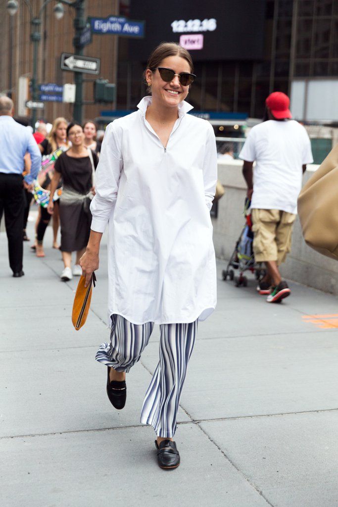 Masih dengan inspirasi normcore, memadukan kemeja oversized dan celana berpotongan longgar bukan kesalahan mode saat ini. Asal Anda tetap menyelipkan item yang fashionable di sana, seperti dari aksesori atau dari sepatu. Untuk menyeimbangkan tampilan kemeja oversized, celana dengan motif garis vertikal adalah pilihan aman untuk memberi ilusi kaki jenjang jika Anda ingin mencobanya.