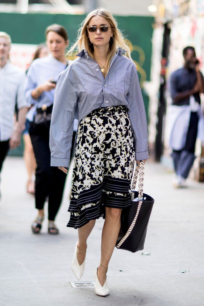 Print yang kontras dari kemeja bermotif garis serta rok nuansa monokrom ini begitu mencuri perhatian. Seorang blogger bernama Pernille Teisbaek memberi volume pada bagian atas tubuhnya dan menyeimbangkannya bersama rok berpotongan lurus. Membuka dua kancing teratas seperti yang dilakukan Pernille bukan tanpa alasan, namun agar tampilannya tak terlihat penuh di bagian atas. (asf/asf)