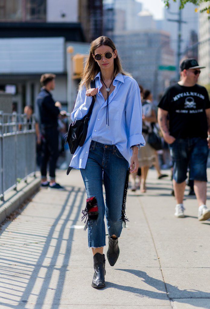 Sejak normcore berjaya sekitar 2013, gaya street style fashionista ketika bulan mode berlangsung semakin terlihat minimalis dan kasual. Salah satu item kunci andalannya adalah sebuah kemeja. Namun kali ini yang jadi incaran adalah kemeja berukuran oversized. Dengan ukuran lebih besar dari tubuh, kemeja ini terlihat nyaman khususnya ketika dipadankan bersama track pants, atau saat ingin memamerkan sepatu statement terbaru dalam koleksi busana Anda. Dibanding hanya memadukan kemeja dan jeans, contek siluet baru yang diberikan oleh para fashionista New York berikut ini selama New York Fashion Week berlangsung.