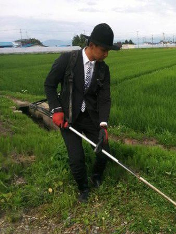 Setiap pergi kerja, Kiyoto Saito berpakaian laiknya seorang pegawai kantoran; setelan lengkap dengan jas dan dasinya. Tapi pemuda asal Prefektur Yamagata, Jepang, itu bukan berkantor di gedung, melainkan ladang persawahan.