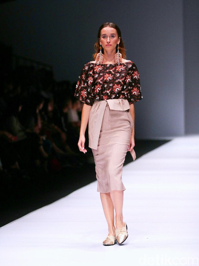 Seperti yang ia suguhkan di peragaan semalam yang merupakan buah kolaborasi JFW dengan Council of Fashion Designers of Korea itu. Muncul berbagai pilihan rok dan luaran putih berbahan laser-cut yang motifnya menyerupai motif batik kawung. Beberapa di antaranya dipasangkan dengan rok bersiluet A dan atasan bertekstur lipit sehingga menciptakan kesan feminin.