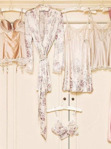 Berbahan satin, lingerie favorit model asal Inggris ini hadir dengan motif floral dan aksen renda dalam palet pastel yang manis.