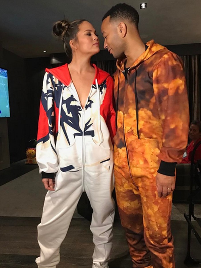 Adapun John dan Chrissy memilih piama bergaya jumpsuit atau onesies dalam tema KFC (Kentucky Fried Chicken). Keduanya pun memamerkan penampilan tersebut di Instagram dan Twitter masing-masing.