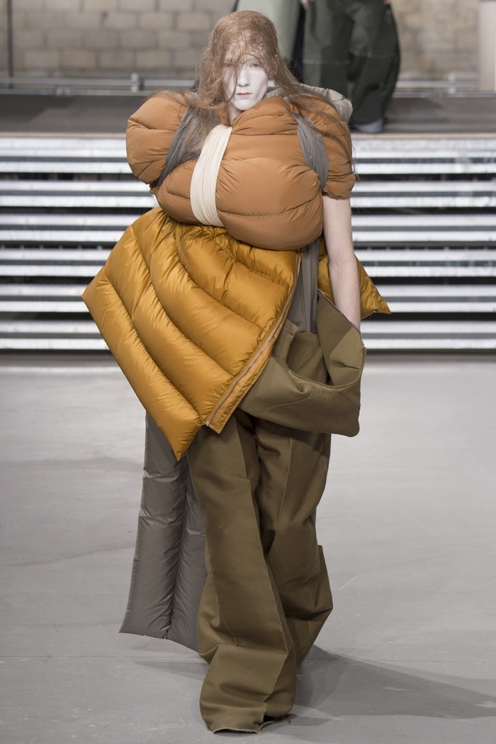 Namun bukan kemolekan atau siluet montok atraktif seperti yang Anda bayangkan yang ditawarkan Rick Owens. Fashion shownya dibuka dengan jaket bahan kulit oversized dan beberapa busana dikemas dengan bahan sheer.