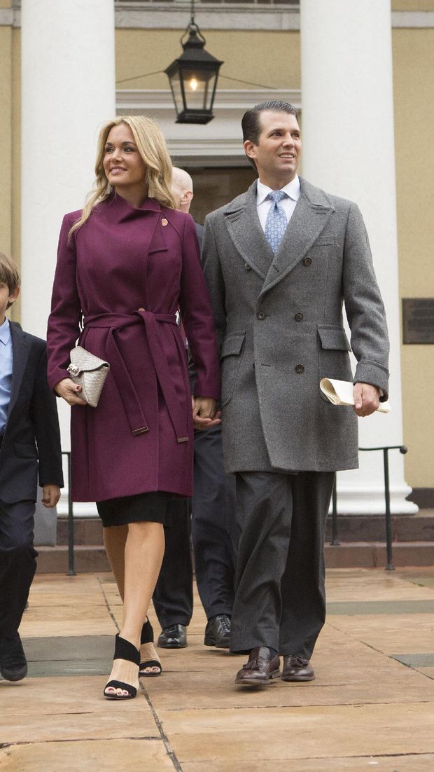 Menantu Donald Trump dari putra pertamanya, Donald John Trump Jr. ini pun memilih tampilan smart elegan di inaugurasi pagi hari. Ibu lima anak ini memilih coat ungu tua yang dipadu gaun hitam. Vanessa tampak membawa anak-anaknya yang masih kecil.
