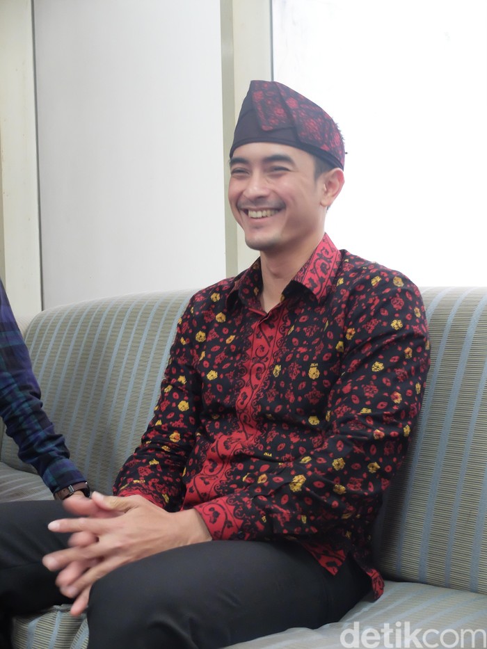 Seperti yang Zumi pakai saat berkunjung ke markas detikcom di kawasan Buncit, Jakarta Selatan, Rabu (1/2/2017). Pria yang dulunya lebih dikenal sebagai aktor itu muncul dalam balutan kemeja batik Jambi bernuansa merah kegelapan.