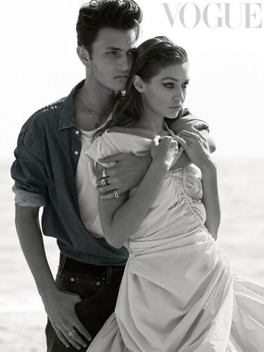 Gigi tampil seduktif dalam balutan gaun biru muda untuk sampul majalah. Sementara Anwar menemani sang kakak di halaman fashion spread. Gigi dan Anwar berpose intim dalam foto bernuansa hitam-putih yang dibidik fotografer fashion ternama Mario Testino.