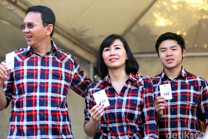 Veronica Tan tampil lebih kasual dengan kemeja kotak-kotak merah yang jadi seragam kampanye sang suami, Basuki Tjahaja Purnama atau yang akrab disapa Ahok. Veronica yang pagi itu datang bersama suami dan anak sulungnya, Nicholas tampil dengan kemeja, jeans dan tambahan belt.