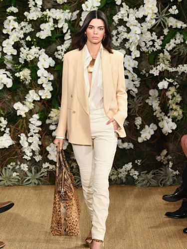 Usai bergaya feminin dan jenaka, giliran gaya maskulin yang terasa pada penampilan Kendall di fashion show Marc Jacobs dan Ralph Lauren. Tampil di Ralph Lauren, kakak Kylie Jenner itu mengenakan jeans dan blouse putih yang dipadu dengan blazer off-white.