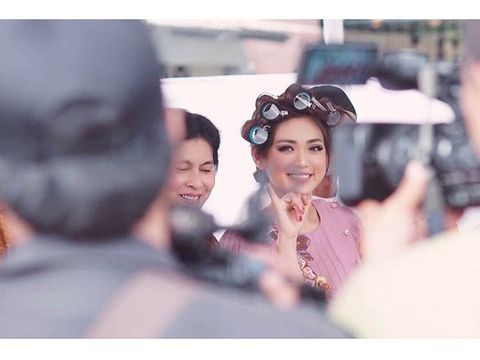 Dengan roll rambut yang masih terpasang, presenter yang akrab disapa Jedar itu tetap ikut menggunakan hak pilihnya. Ibu satu anak itu tampak mengenakan dress pink bergaya vintage