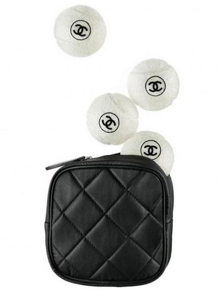 Bola tenis ala Chanel datang dengan warna klasik yang berkelas, yakni warna putih dengan logo Chanel hitam. Tiap Rp 6 juta yang dikeluarkan, Anda akan dapat satu set berisi empat bola dan tas kulit quilted hitam untuk menyimpannya.