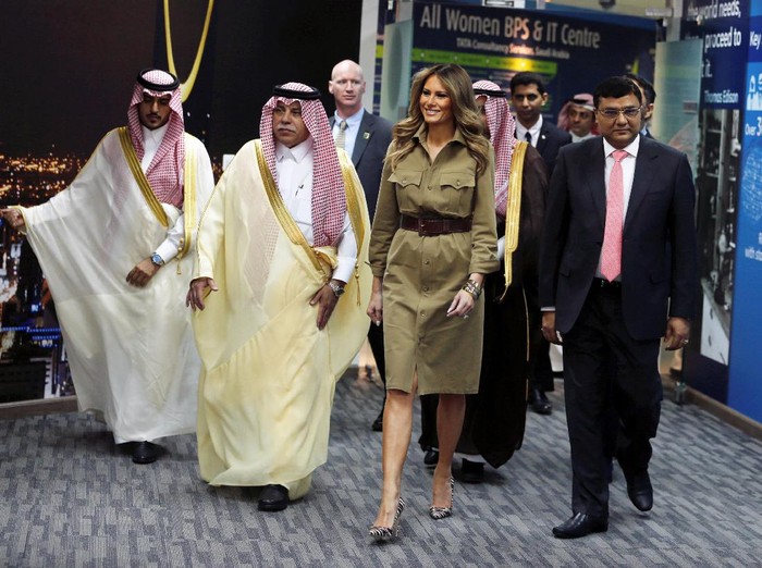 Melania Trump mengenakan jumpsuit Stella McCartney saat tiba di Riyadh, Arab Saudi, bersama Presiden AS Donald Trump. (Foto: Reuters) |