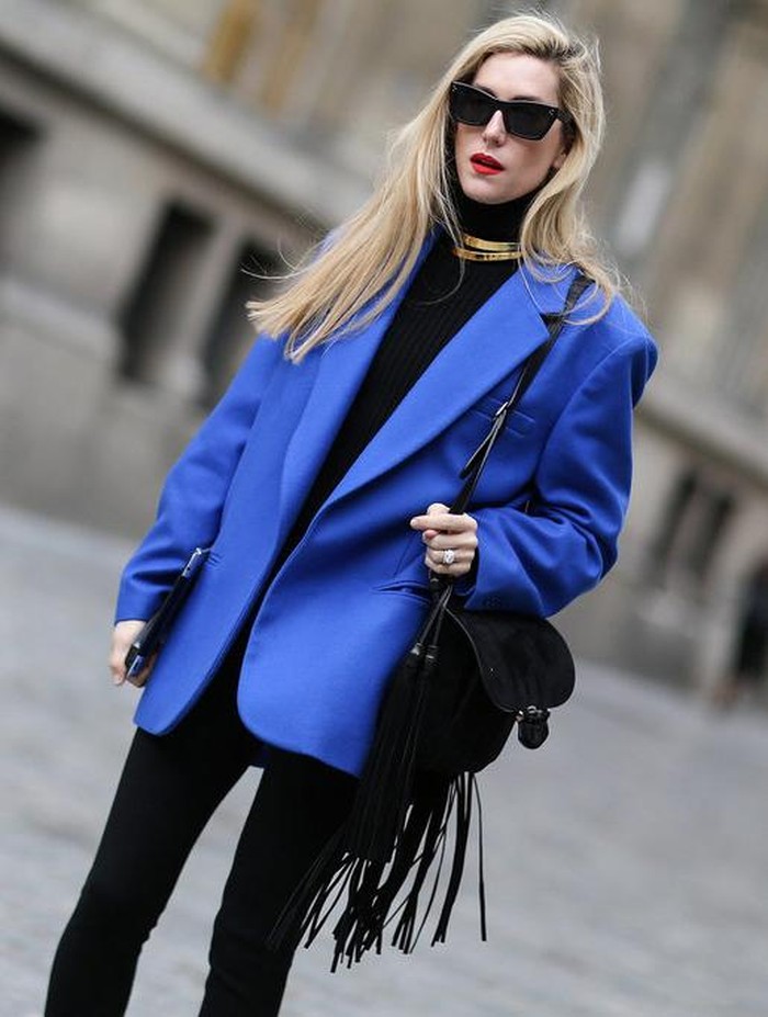 Pilihan pertama adalah memadukan legging dengan atasan hitam, kemudian pilih blazer berwarna kontras atau yang bermotif untuk membuat penampilan lebih menarik atensi. Sebaiknya pilih blazer dengan potongan yang panjangnya menutupi bokong agar tidak terkesan vulgar.