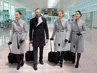 Maskapai asal Spanyol ini merupakan penerbangan kategori low-cost atau budget airline. Tapi bukan berarti kru pesawat harus tampil apa adanya. Coat abu-abu dan hitam dengan model turtle neck serta aksen pita di pinggang ini amat menarik dipandang mata.