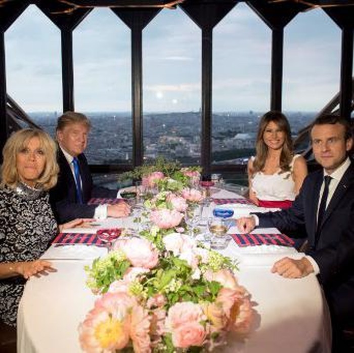 Melania ikut dalam kunjungan singkat Donald Trump ke negara Prancis. Ia dan Trump pun disambut oleh Presiden Prancis Emmanuel Macron dan istrinya Brigitte Macron. Mereka juga dijamu makan malam 'double date' di restoran dalam Menara Eiffel yang super mewah dan romantis. Bisa ditebak, gaya busana mereka tentu sama-sama stylish.