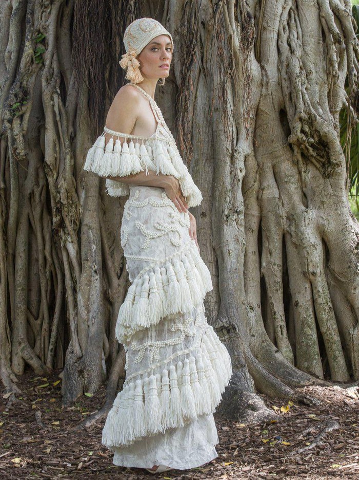 Gaun rancangan wanita bernama Carol berikut juga tidak kalah mencuri perhatian. Hadir dengan siluet gaun pesta ala Great Gatsby di tahun '20-an dengan ornamen tassel dan bordiran. (als/hst)