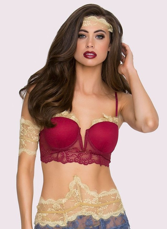 Ada pula lingerie bertema Putri Amazon, Wonder Woman. Yang satu ini memiliki underwear berbentuk unik untuk mengikuti bentuk baju perang Wonder Woman.
