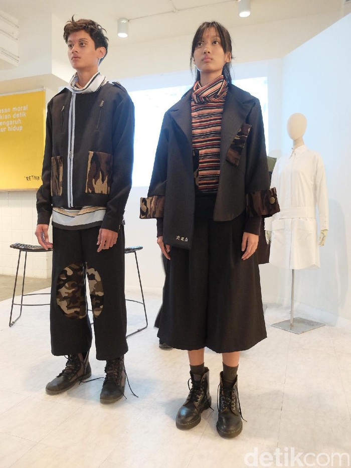 Tapi kali ini, rancangannya tampil dengan motif-motif yang lebih eksploratif, mulai dari garis horizontal hingga camo atau loreng.
