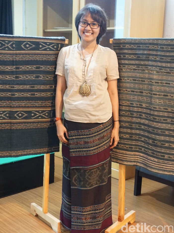 Hiyashinta Klise dengan kain tenun tanimbar bermotif ule rati. Foto: (Daniel Ngantung/Wolipop)