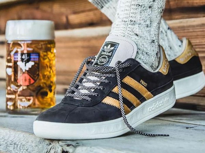 Sneakers yang diberi nama Adidas Munchens itu diberi lapisan khusus yang bisa mencegah tumpahan minuman dan muntahan orang menodai dan terserap ke dalam sepatu.