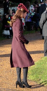 Pada 2011, Kate Middleton juga menghadiri acara Natal di Gereja Sandringham, King's Lyn, Inggris. Kala itu Kate memakai coat warna burgundy yang dipadukan dengan stocking hitam.