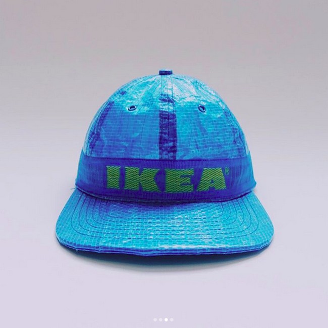 Pada topi yang terbuat dari plastik berwarna biru tersebut, terlampir tulisan IKEA di kedua sisinya. Klik di sini untuk melihat topi lebih dekat.