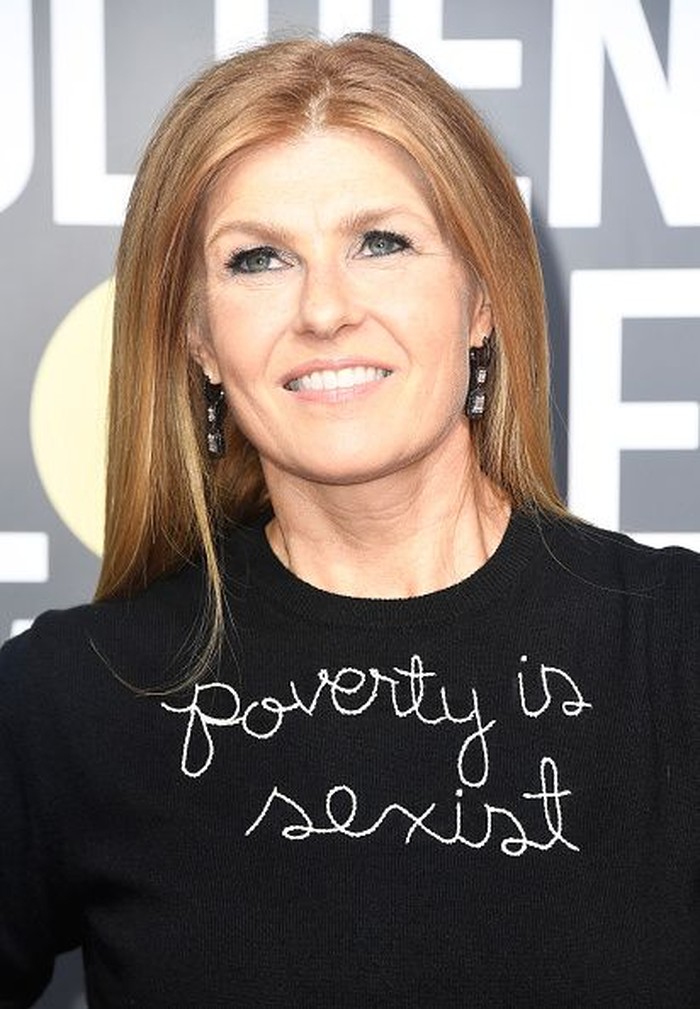 Saat datang ke Golden Globes 2018, Connie memakai busana warna hitam seperti tamu kebanyakan. Namun ada yang berbeda dari gaya Connie dibanding para aktris lainnya. Ia memakai sweater yang dipadukan rok maksi serba hitam. Yang membuatnya jadi perbincangan adalah tulisan 'Poverty is Sexist' (Kemiskinan adalah Seksis) pada atasan tersebut.