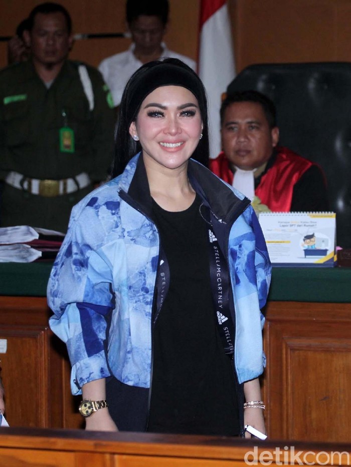 Syahrini Lepas Jaket di Sidang First Travel. Foto: Lamhot Aritonang |