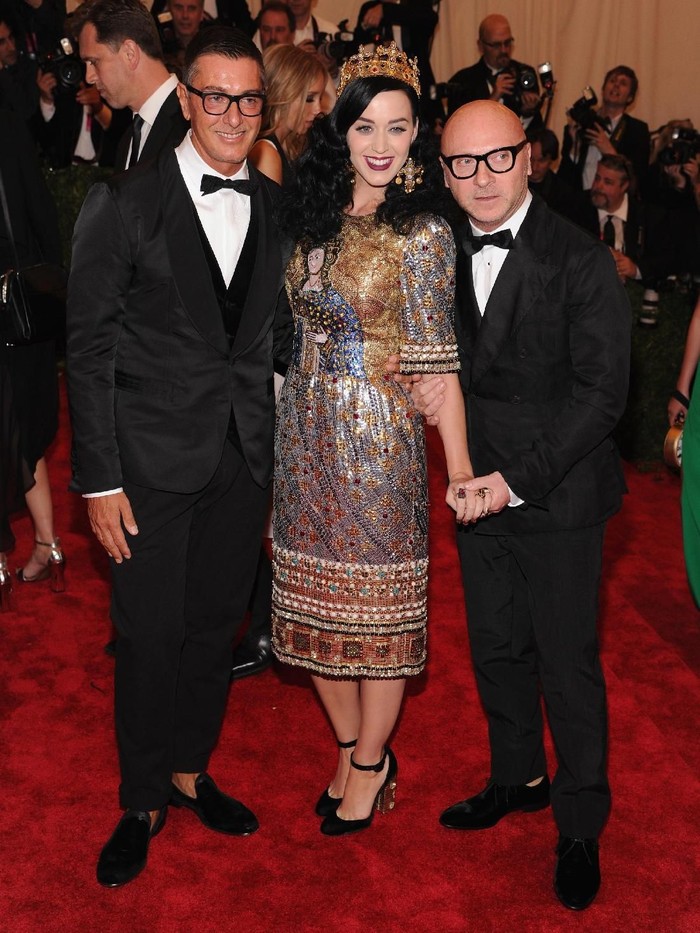Desainer Stafano Gabbana (kiri) bersama rekannya, Domenico Dolce, di MET Gala. (Foto: Jamie McCarthy/Getty Images) |