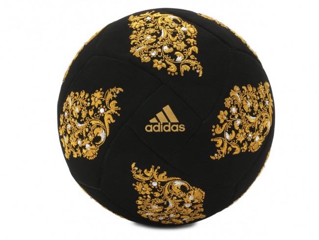 Bola mewah ini juga dihiasi kristal Swarovski yang berkilauan. Bola dijual di departmen store TSUM di Moskow, dengan harga 99.000 ruble, atau sekitar Rp 22 juta. Tertarik beli? Tentunya bola ini dibeli bukan untuk dibuat bermain sepakbola.