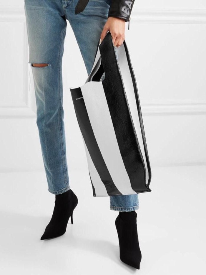 Untuk koleksi Spring-Summer 2018 yang dijual di beberapa department store papan atas, Balenciaga menyertakan Supermarket Shopper Stripe Leather Bag. Ada yang menarik dari penampilan tas keluaran label high-end yang berbasis di Paris, Prancis, ini.
