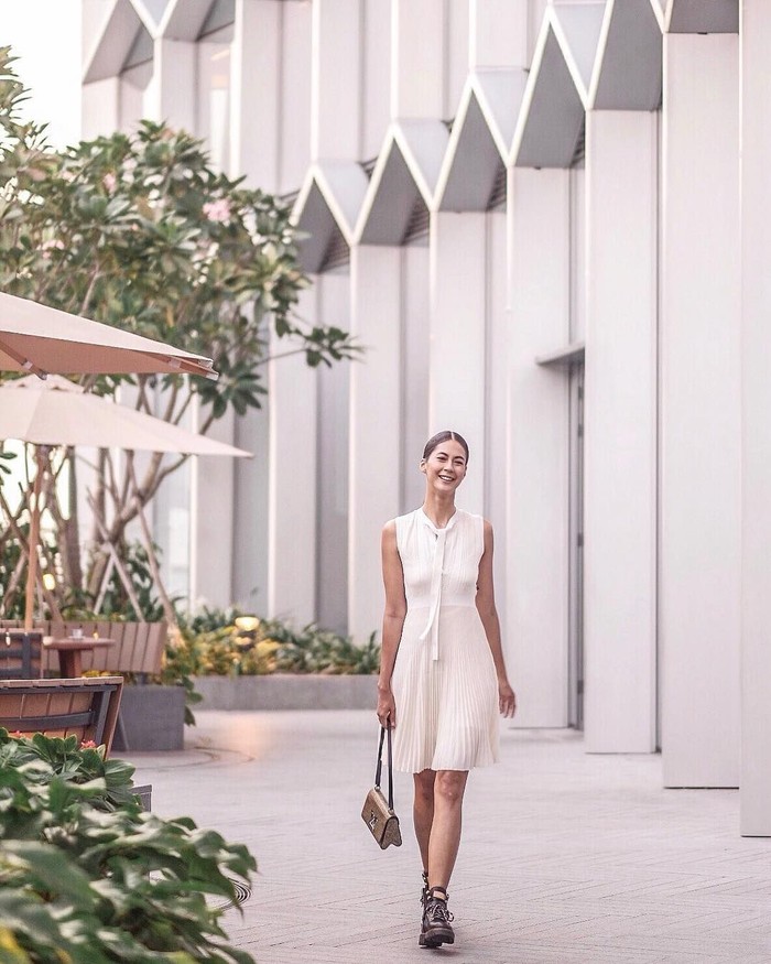 Di salah satu foto dalam akun Instagramnya, Paula tampil cantik berbalut gaun putih lipit yang merupakan koleksi Louis Vuitton Pre-fall 2018. Gaun ultrafeminin hadir dengan aksentuasi lace dan lipit menghadirkan permainan tekstur yang elegan nan versatile untuk berbagai acara.