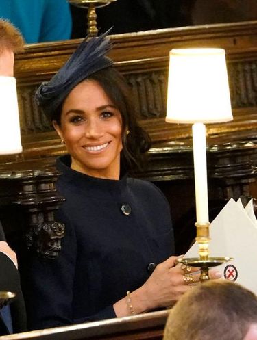 Meghan Markle tampil nyentrik menggunakan banyak cincin di jari-jemari kanannya. Cincin yang ia gunakan pun memiliki ukuran yang cukup besar.