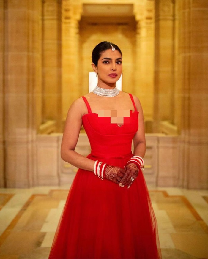 Priyanka Chopra memakai gaun pernikahan berwarna merah dari Christian Dior. Foto: Dok. Instagram/Mimi Cuttrell |