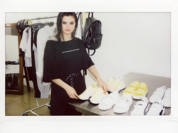 Di jajaran alas kaki, SG x Puma terbaru menyertakan deretan sneakers bergaya slip on yang tersedia dalam palet pastel nan feminin. Tidak ketinggalan sendal bertali yang dinamai 'Cali Sandal' karena menurut Selena sangat nyaman dan bisa dipadukan dengan busana apapun. Demikian dikabarkan US Weekly.