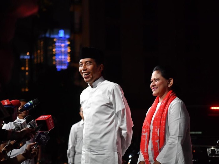 Mendampingi sang suami, keduanya mengenakan busana putih yang seolah menjadi 'dresscode' paslon nomor 1 saat kampanye maupun debat. Iriana Jokowi mengenakan blouse putih dan melengkapinya dengan scarf merah bertulisan '01' sebagai pelengkap gaya. Syal ini juga dikenakannya saat debat capres ke-4 Sabtu (30/3/2019) lalu.