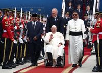 Momen Paus Fransiskus tiba di Jakarta pada September 2024. (Foto: REUTERS/Willy Kurniawan) |