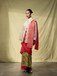 Di balik setiap siluet modern yang ditawarkan, selalu tersirat sentuhan tradisi yang memang selalu menjadi DNA label besutan desainer lulusan ESMOD Jakarta dengan gelar Best Pattern Maker ini. Ada sulam halus kerancang dan corak batik kawung yang diukir pada material kulit, ditambah dengan ikat cemplong Bali dengan interpretasi segar berdampingan dengan detail appliquΓ© dan jaket sulam bulu yang terinspirasi seni kolonial baroque.