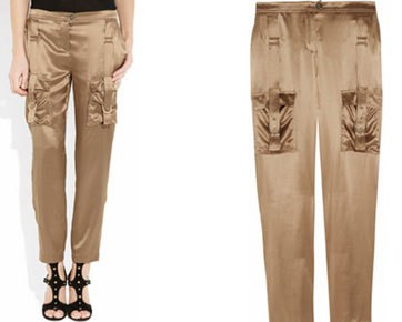 Silk-satin Cargo Pants Roberto Cavalli bisa dikenakan saat acara formal maupun kasual, sesuai cara Anda memadu-padan. Kombinasi cargo satin dengan jaket kulit dan tank-top hitam, cocok untuk gaya elegan di pesta formal. Anda tinggal menambahkan kalung chunky dan strappy heels hitam.
