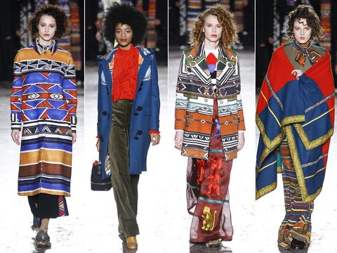 Di tangan desainer berdarah Italia-Haiti ini, tren color-blocking hadir dalam nuansa tribal yang kental. Motif-motif bergaya etnik dalam siluet boxy yang mendominasi menjadi kekuatan dari koleksi ini.