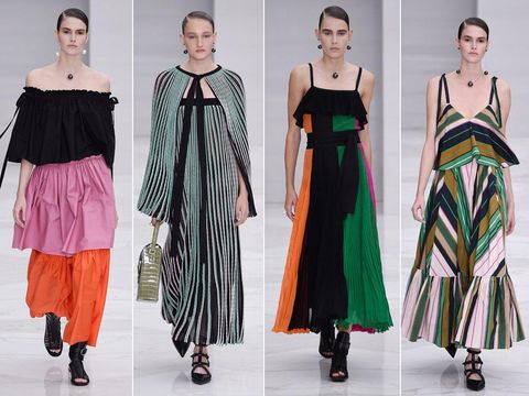 Di catwalk penuh warna, brand asal Florence, Italia, ini menyuguhkan koleksi dalam vibe bohemian yang jenaka. Beberapa busana muncul dalam permainan color-blocking yang berani.