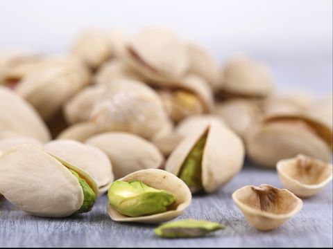 Pistachio kaya akan nutrisi. Kacang dengan rasa tawar yang sedikit gurih ini mengandung serat, biotin, vitamin B6, thiamin, folat, dan lemak tak jenuh. Makan beberapa butir, bahkan hingga 15 pistachio masih terbilang 'aman' karena kacang ini termasuk rendah kalori, jika tidak ditambahkan garam. Anda juga bisa memakannya bersama keju atau buah-buahan.