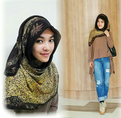 Foto: Gaya Busana Simpel dengan Ragam Kreasi Jilbab ala Fitri Arifin