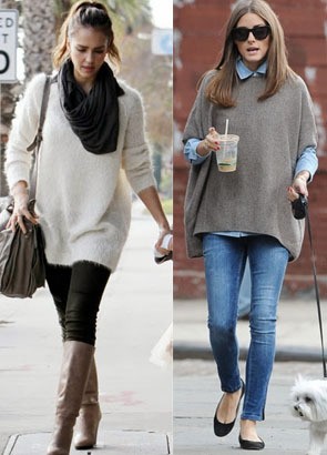 Gaya berbeda ditunjukkan Olivia Palermo menggunakan oversized sweater. Lihat bagaimana ia memakai material knit dengan setelan denim. Outerwear dengan potongan lengan pendek yang dipadukan kemeja panjang akan membuat penampilan terlihat urban dan trendi. Cukup lengkapi dengan gaya jilbab sederhana yang bisa dimasukkan ke dalam kerah ketika ingin terlihat simpel.