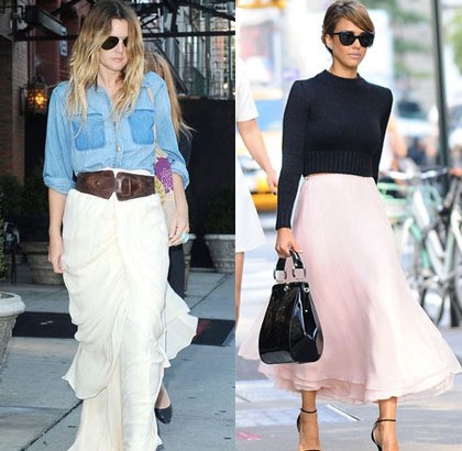 Sementara padu padan rok panjang ala selebriti lainnya datang dari Jessica Alba. Perpaduan rok bertumpuk dengan cropped sweater membuat penampilan terlihat stylish. Lengkapi dengan strappy high heels, jilbab warna gelap, dan tote bag ketika akan menghadiri acara formal.