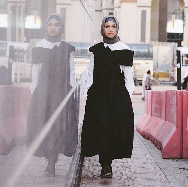 "Yang penting nggak ada yang ketat atau membuka aurat. Seperti sedang memakai abaya saja. Jilbabnya juga pilih yang panjang jadi bisa divariasikan, bisa dipakai salat juga jalan-jalan," sarannya saat ditemui Wolipop di Potato Head Garage, SCBD, Jakarta Pusat.