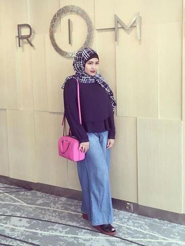 Celana berpotongan lebar diaplikasikan Intan ketika tampil kasual. Celana jeans palazzo tersebut bisa membuat kaki terlihat lebih jenjang terutama bila ditambahkan high heels. Padukan dengan blouse yang fit atau tidak terlalu panjang agar tak memberikan kesan tenggelam. Intan tampil stylish dalam nuansa busana monokrom. Jilbab motif memberikan sentuhan yang atraktif.