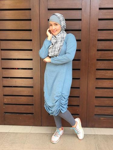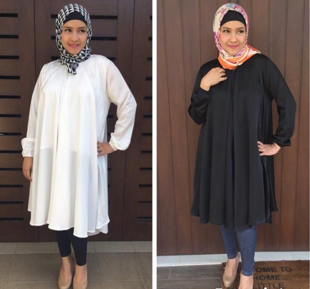 Tampil monokrom dalam perpaduan tunik seperti yang diterapkan Intan. Potongan blouse tunik mampu menutupi lekuk pinggang dan bokong. Bila tunik polos bisa dipadukan dengan kerudung motif untuk tampilan yang dinamis. Namun bila sudah bercorak, sebaiknya pilih kerudung yang polos demi menyeimbangkannya. Anda bisa tambahkan belt sebagai pemanis. (aln/eny)