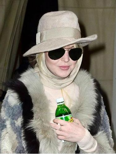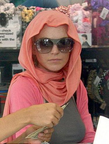 Di foto ini, Lindsay memakai scarf panjang yang dililitkan di kepala seperti menggunakan jilbab. Ia menambahkan topi ketika sedang berada di Soho, New York. Lindsay berusaha menyamar untuk menyelamatkan dirinya dari paparazzi. Kala itu ia mengenakan atasan dan jaket lengan panjang berbulu. Kacamata aviator melengkapi gaya klasiknya. Foto ini diambil pada 2012 lalu.