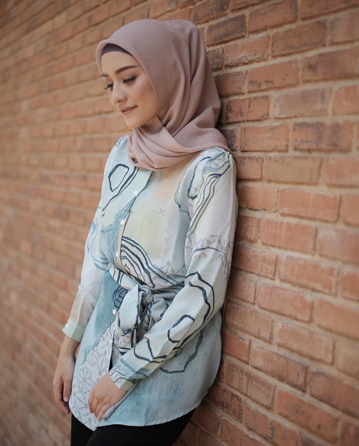Selebgram Nabila Hatifa memberikan inspirasi jilbab nude dengan aksen rumbai pada bagian sisinya. Jilbab nude dipadukan dengan warna cerah yang terlihat kontras tapi atraktif. Celana berpotongan terompet dan modifikasi blouse membuat penampilannya tampak stylish.